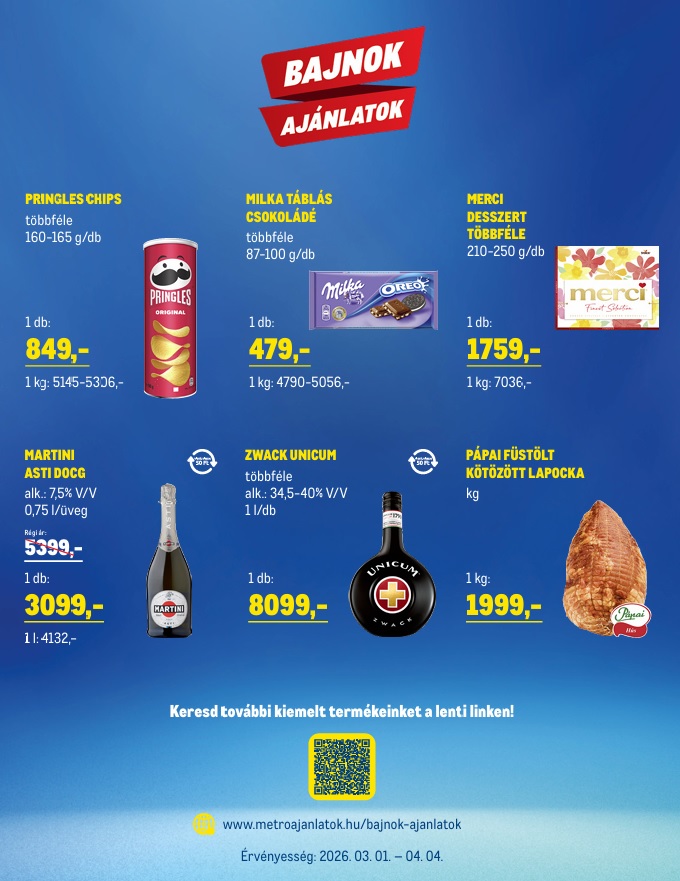 METRO nagyvállalati partneri ajánlatok március hó 2026/03/05 | Márciusi bajnok ajánlatok További bajnok ajánlatok Húsvéti ajánlatok További METRO katalógusok Kiemelt hír